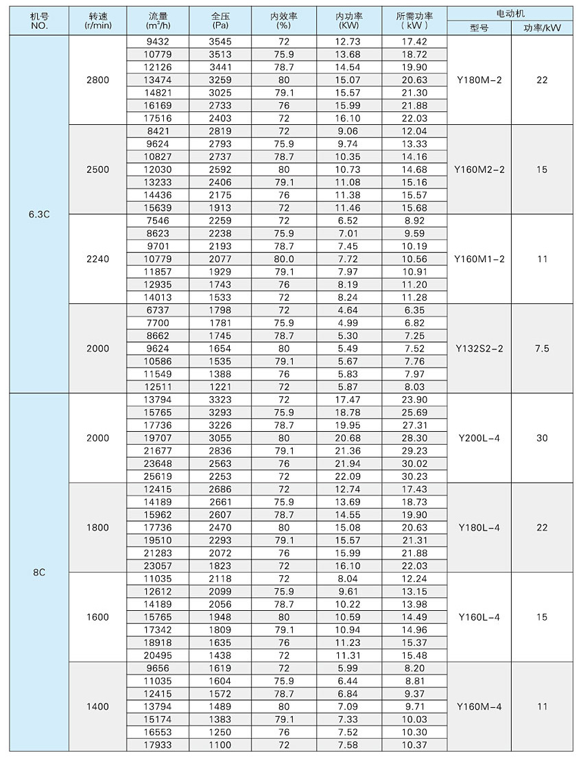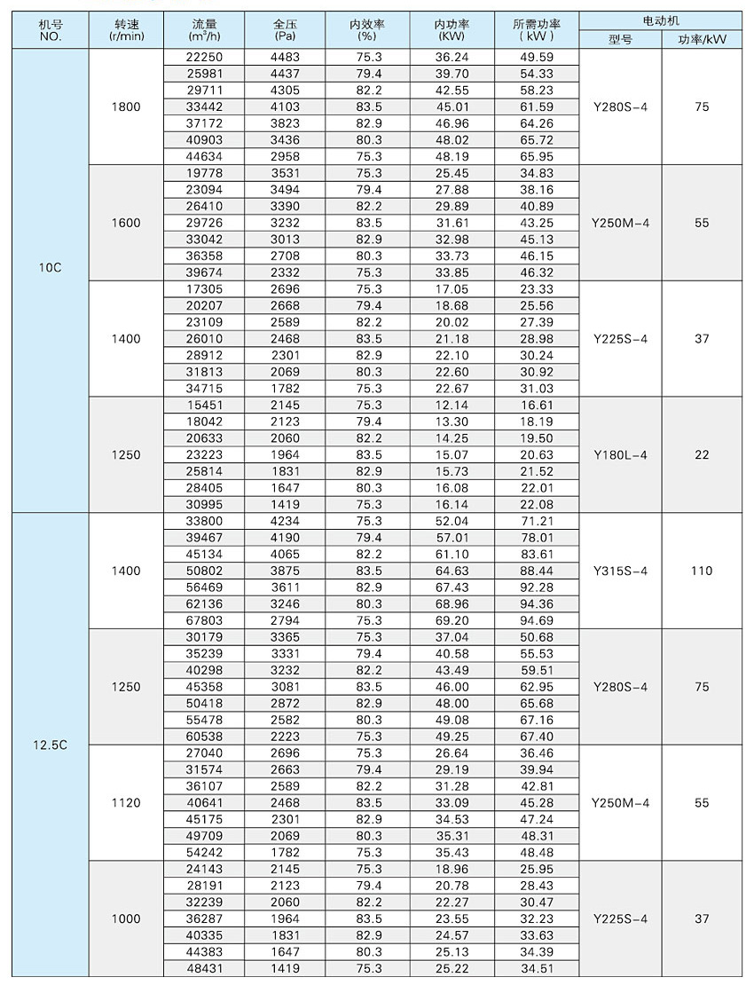 ( 1 )引風(fēng)機(jī)制成單吸入,機(jī)號(hào)有NO.4、5、6.3、8、10、12.5六種。